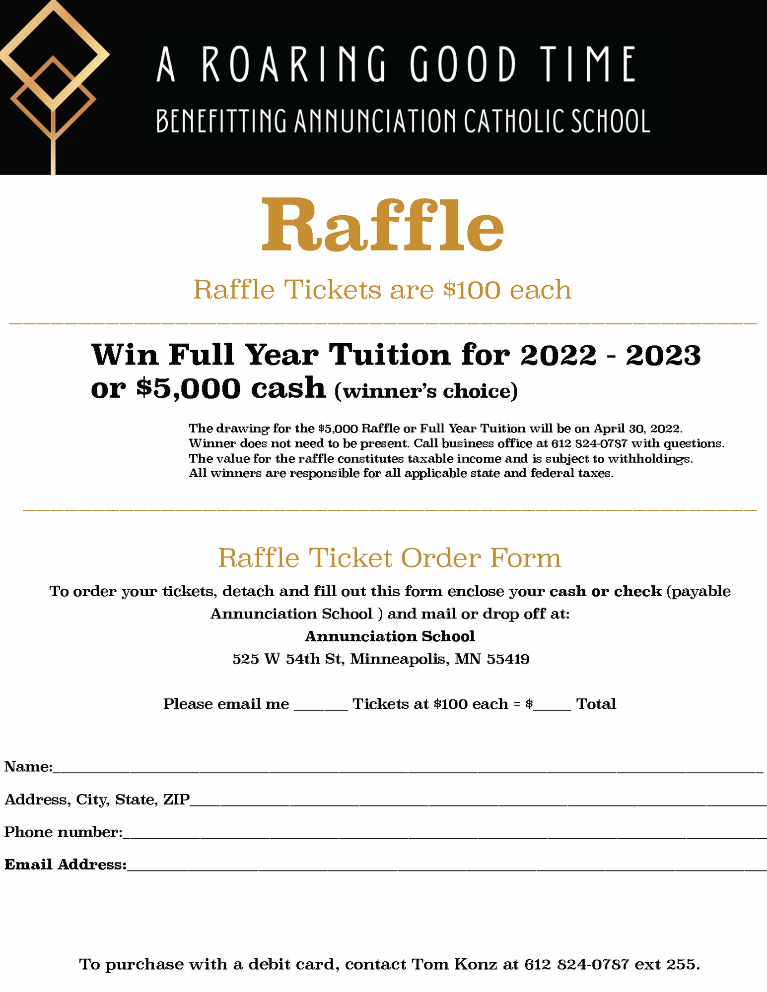 Is luck on your side? Will you be the big winner of the Grand Prize, full-year tuition (or $5,000 cash)? Only one way to find out - use the form below and get your tickets purchased today! *Need not be present to win.